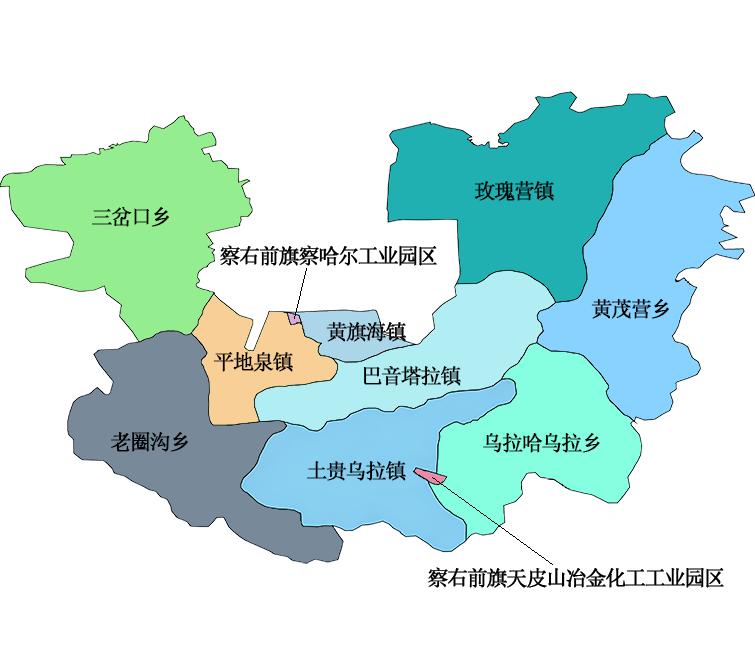 察哈尔右翼前旗位于内蒙古自治区中部、乌兰察布市中南部。总面积2440平方千米,有耕地面积72.8万亩,其中水浇地面积23.0万亩。辖5个镇、4个乡、19个社区居民委员会、93个村民委员会、689个村民小组。2023年,地区生产总值1033755.0万元,按可比价计算,同比增长8%。其中,第一产业188339.0万元,同比增长9.7%;第二产业501403.0万元,同比增长7.1%;第三产业344013.0万元,同比增长6.5%。